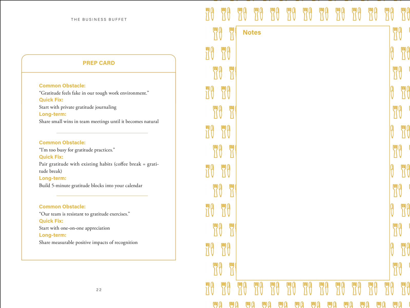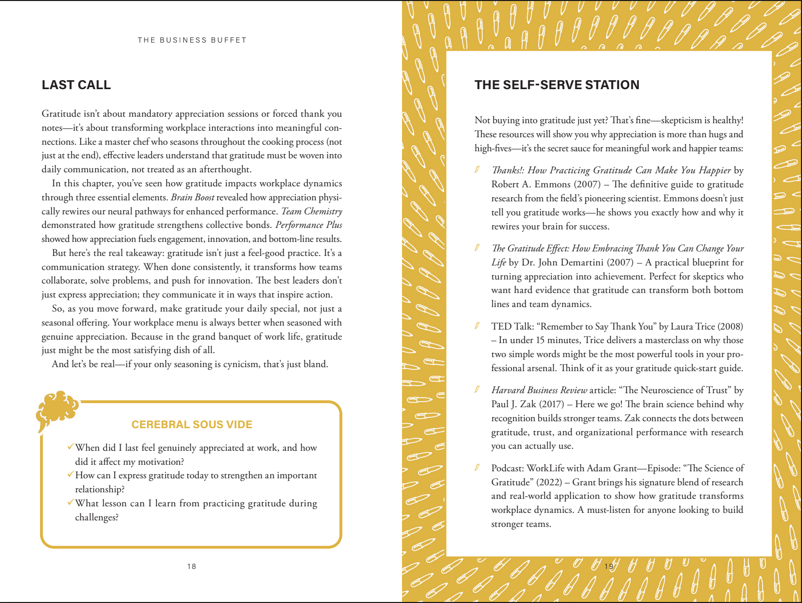 Inside The Business Buffet, every chapter is a full-course experience with: